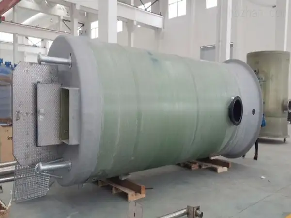 由顶盖、玻璃钢(GRP)筒体、底座、潜水泵、服务平台、管道等部分组成,以满足增压提升排水要求的设备